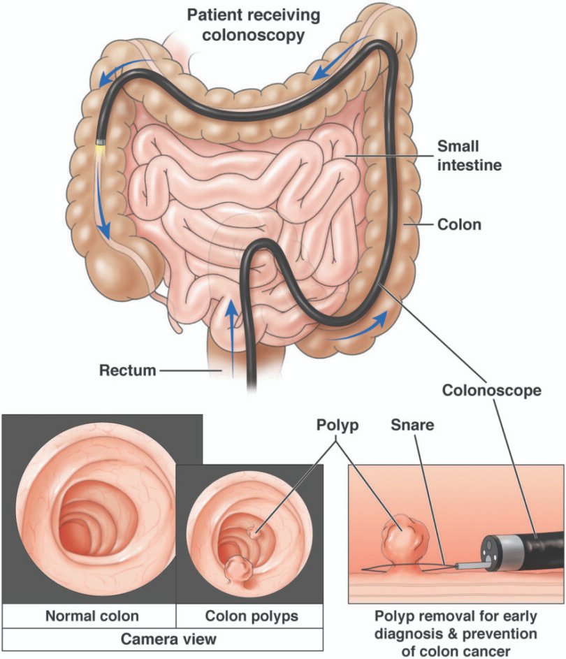 Colonoscopy is usually performed under light anesthesia. It is a safe routine procedure. The complication rate is extremely low. Before diagnosis the patient must defecate thoroughly, usually by drinking large quantities of liquid while dispensing simultaneously with food.